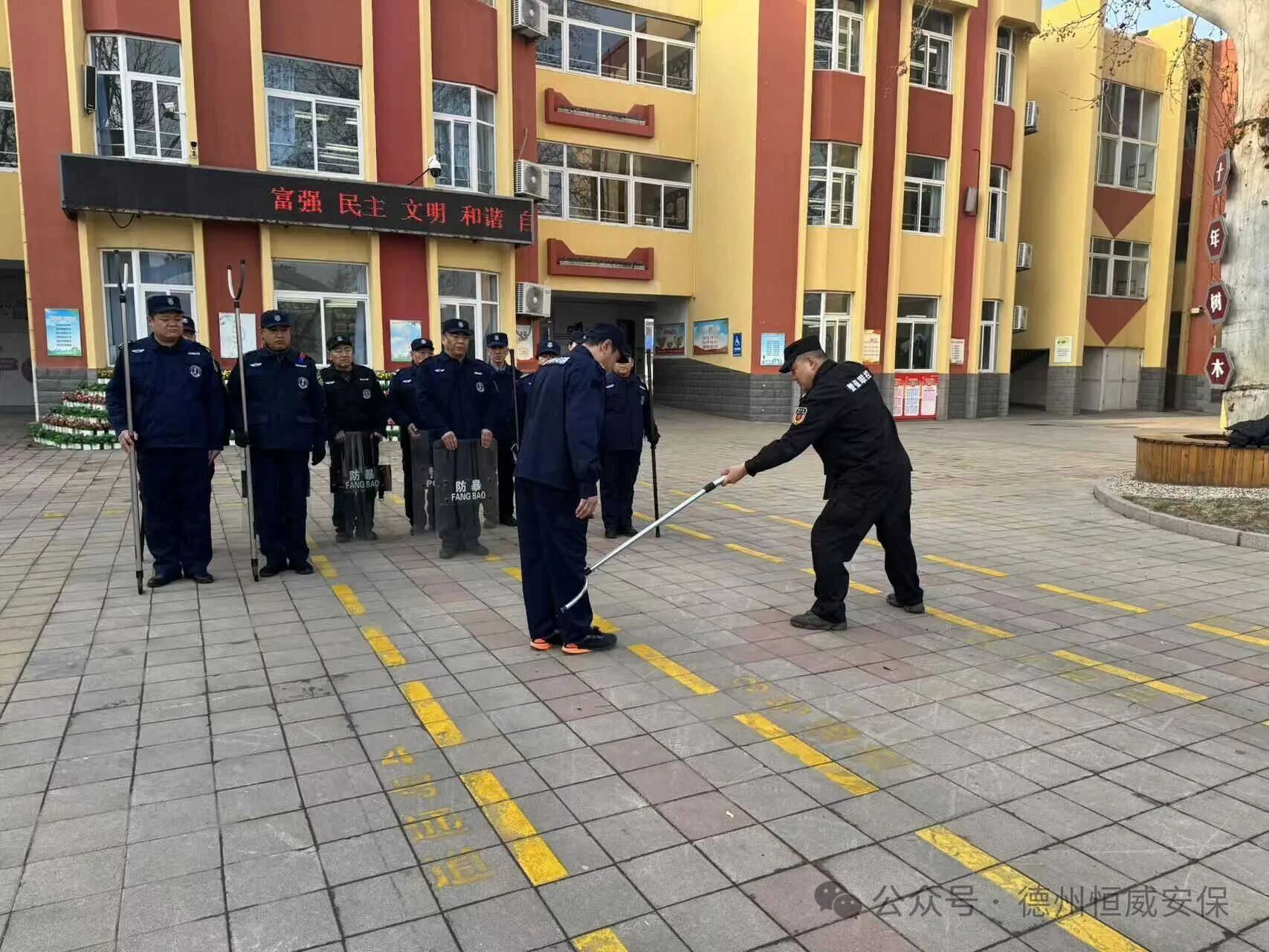 为进一步筑牢辖区中小学、幼儿园及医院等重点单位的安全防线,切实提升一线安保人员突发事件处置能力,近日,德州市恒威安保服务有限公司按照工作部署,组织各客户单位分批开展最小作战单元专题演练。此次演练坚持“实战实用实效”原则,重点围绕防暴器材使用技巧及小组协同作战进行强化训练。