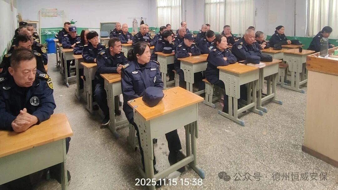 为积极落实德城区教体局关于校园安保工作的相关要求,应对保安队伍人员更替及年轻化趋势,切实提升新入职校园保安员的安全防范意识与应急处突能力,使其尽快适应岗位要求,近期,德州市恒威安保服务有限公司利用周末时间,周密组织开展了新入职校园保安员专题系列培训。