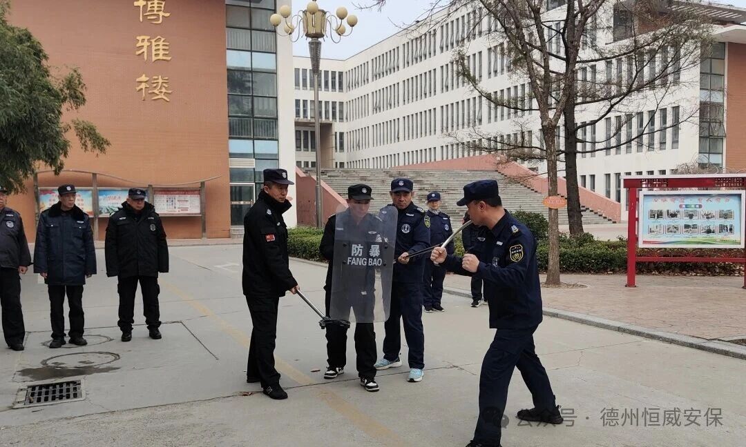 为进一步筑牢辖区中小学、幼儿园及医院等重点单位的安全防线,切实提升一线安保人员突发事件处置能力,近日,德州市恒威安保服务有限公司按照工作部署,组织各客户单位分批开展最小作战单元专题演练。此次演练坚持“实战实用实效”原则,重点围绕防暴器材使用技巧及小组协同作战进行强化训练。